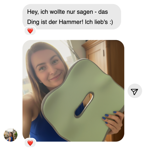Wir lieben unser ergonomisches Sitzkissen und wir sind sicher, du wirst es auch! Deshalb geben wir dir unsere 14-Tage-Garantie: Wenn du nicht zufrieden bist, prüfen wir deinen Fall und finden gemeinsam eine Lösung, die dich glücklich macht.