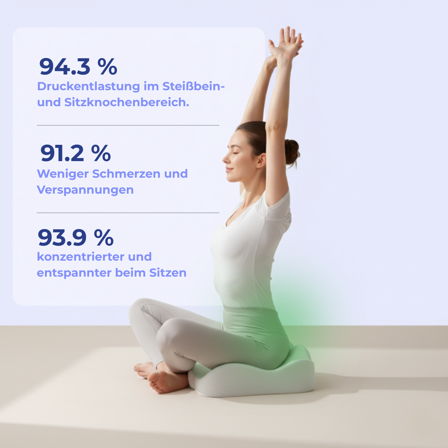 Ja, spürbar schon nach den ersten Tagen – die Druckverteilung entlastet dein Steißbein und richtet automatisch deine Sitzhaltung auf.