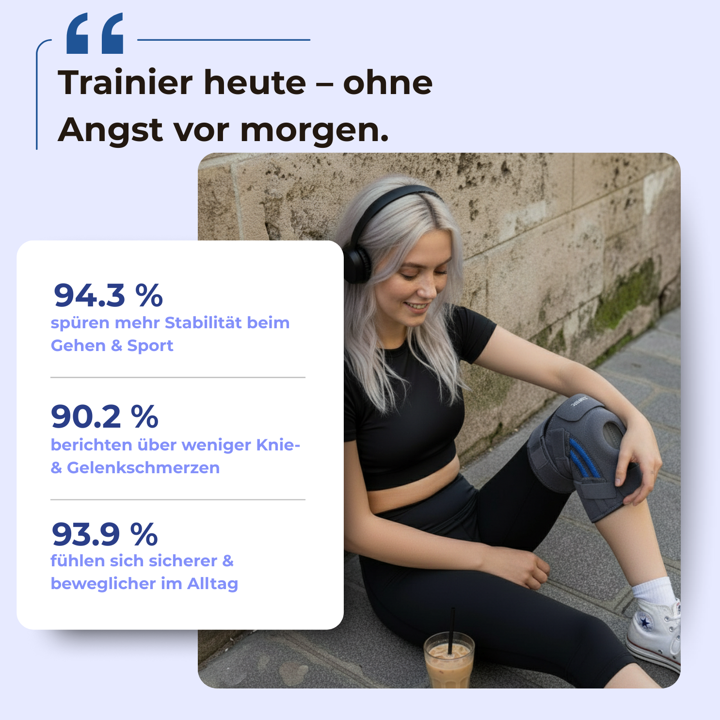 Die Kombination aus Druck, Stabilität und Wärmeeffekt unterstützt dein Knie sofort.